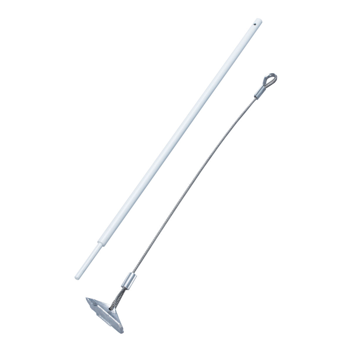 Het grondanker met slagpin is de snelle oplossing zonder betonstorten als de haak voor de adjusterbanden breekt.