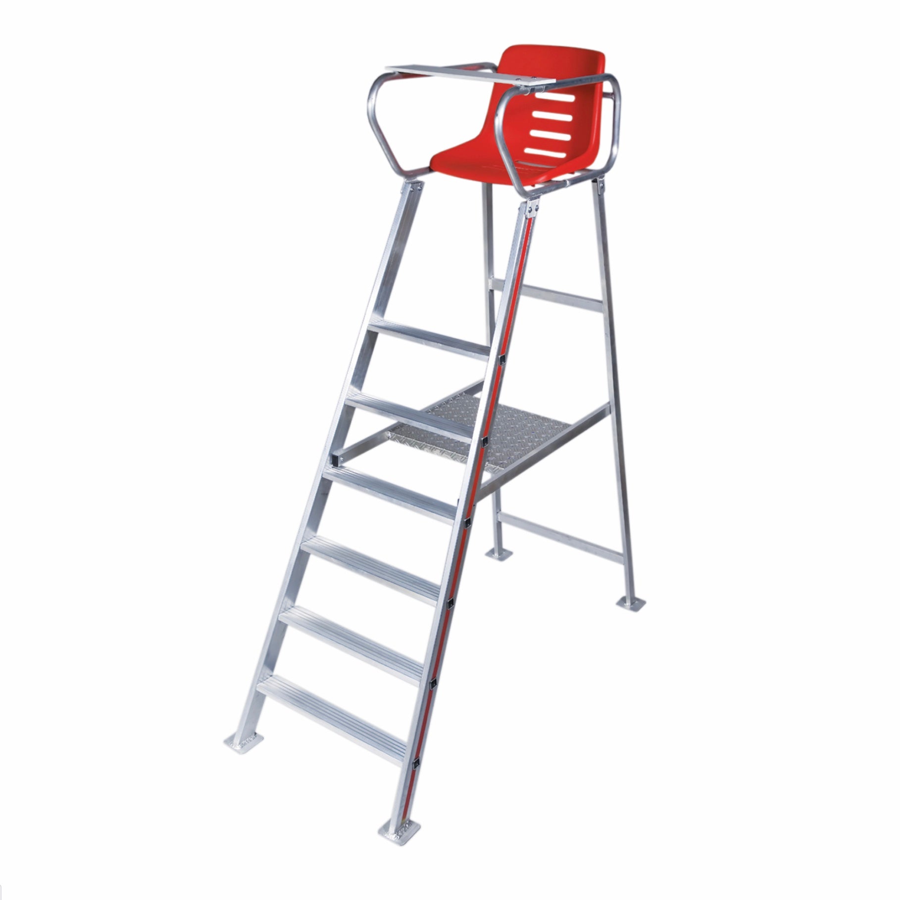 Elegante en stabiele scheidsrechtersstoel van aluminium met extra legplank